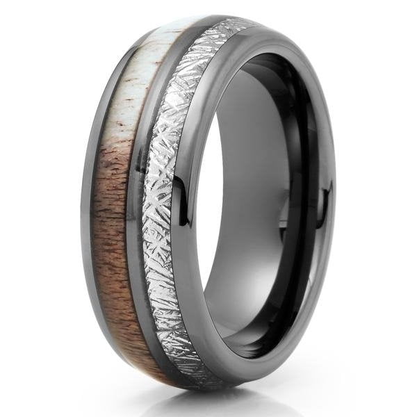 8mm Gunmetal Tungsten Ring Deer Antler Wedding Band Meteorite Ring Walmart Com
